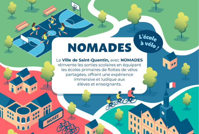 The municipality of Saint-Quentin is testing a new service providing primary schools with shared fleets of bicycles. This initiative is a first for France and provides multiple benefits to students, teachers and the wider city. It allows teachers to organise cycling field trips with their classes, promotes the early adoption of regular cycling habits, encourages active mobility and sport, expands opportunities for school outings, helps shape a positive cycling culture in the city, and reduces the carbon footprint and costs of school transport.